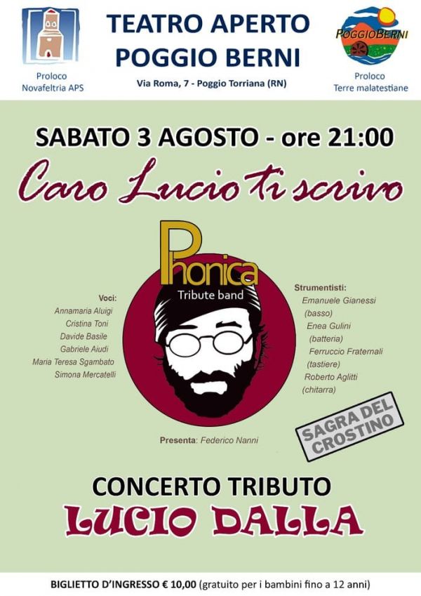 Sabato 3: i Phonica Tributo a Lucio Dalla, ore 21:00, ingresso a pagamento